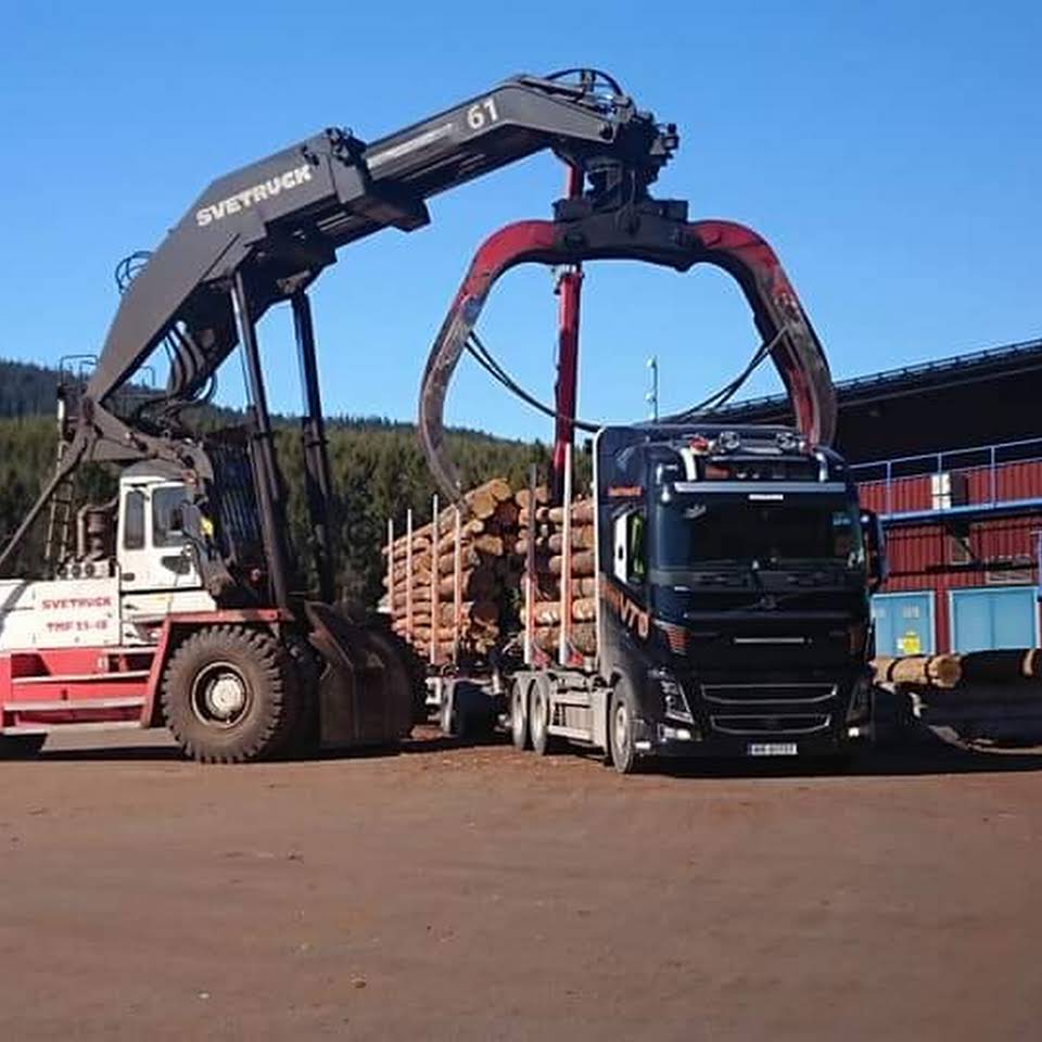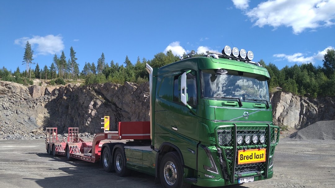 Vi spesialiserer oss hovedsakelig på transport av grus, tømmer og maskiner.